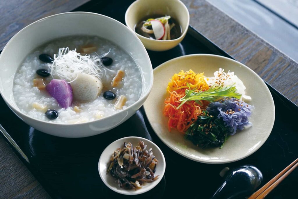 お腹がじんわりと温まりゆっくりと養生していく、そんな薬膳粥です。